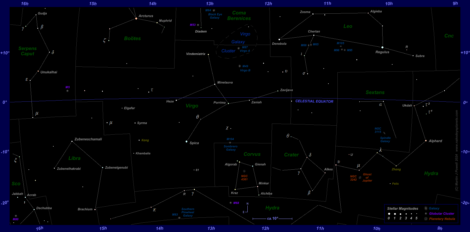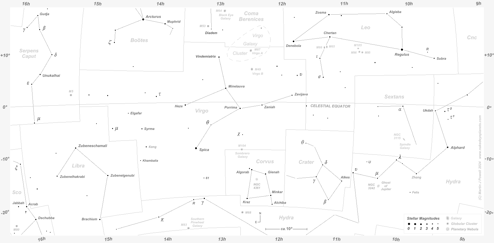 mag. +2.7), at the rump of the Lion. By this time of year Zosma has become unobservable from higher