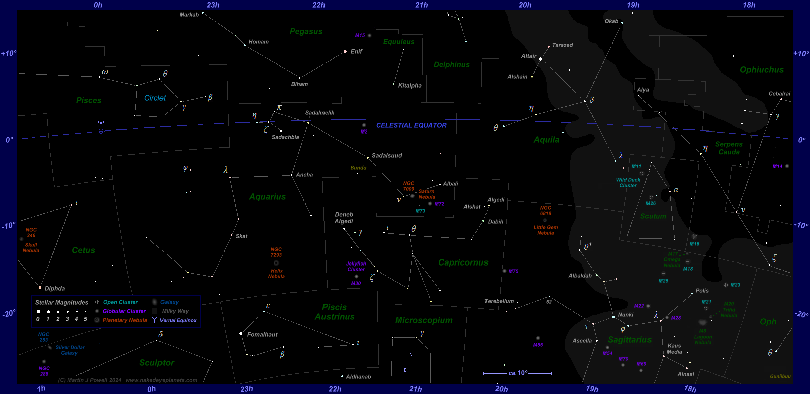 Venus was finally lost from view from both mid and high-Northern latitudes by the third week of March, bringing the 2024-25 evening apparition to a close. The planet retrograded unseen into Pegasus on March 22nd, traversing a 1º.2 wide section of the constellation's South-eastern corner over the next two days.